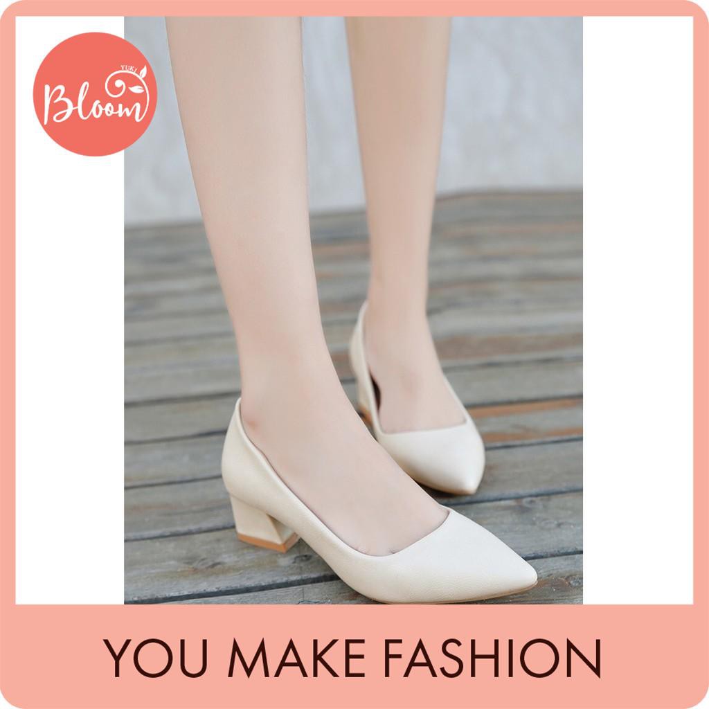Giảm giá Giày cao gót nữ đẹp, Giày cao gót công sở Bloom 7 phân da mềm bít đầu đế vuông trơn Tặng kèm bông tai còn 137,750đ